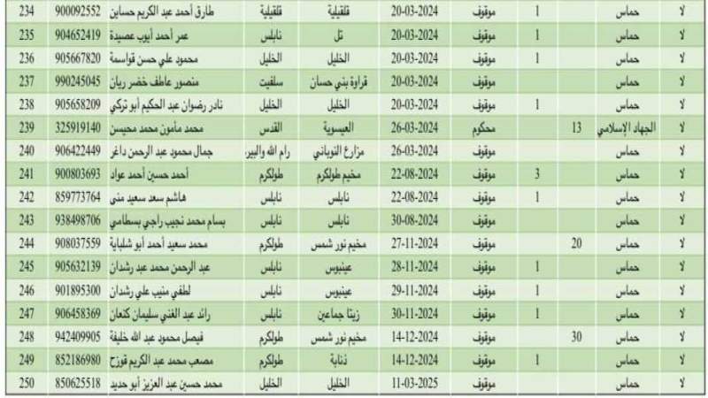 نشر مكتب إعلام الأسرى أسماء الأسرى الفلسطينيين المقرر الإفراج عنهم، في إطار صفقة التبادل بين “حماس” و”اسرائيل”.