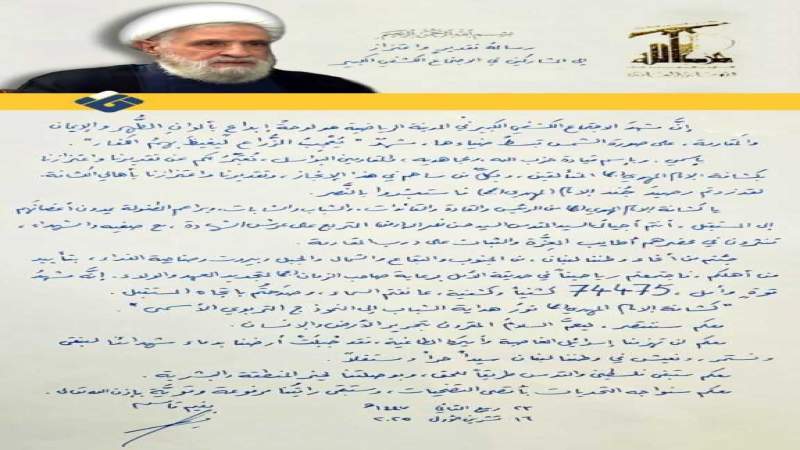رسالة تقدير واعتزاز وجهها الامين العام لحزب الله حجة الاسلام والمسلمين سماحة الشيخ نعيم قاسم الى المشاركين في التجمع الكشفي الكبير “أجيال السيد”، مؤكداً ان لبنان معهم سيواجه التحديات بأقصى التضحيات ..