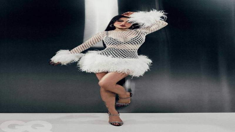 كما ظهرت بفستان قصير أبيض من دولتشي أند غابانا Dolce & Gabbana بقماش شبكي، مزين بالريش عند الحواف والأكمام، ونسقته مع براليت وشورت أسود تحته، وأكملت اللوك بصندل أسود مزين بتفاصيل ستراس.