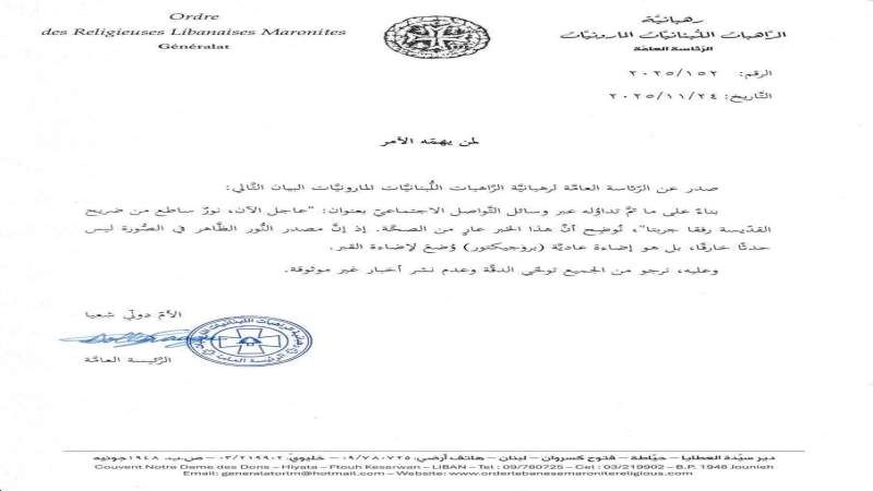 بعد تداول أنباء عن ظهور نور من قبر القدّيسة رفقا في جربتا، أوضح دير مار يوسف حيث يقع الضريح أن ما يتم تداوله غير دقيق. وأكد الدير أن النور ناجم عن جهاز بروجيكتور مُثبت في المكان، ولا علاقة له بأي ظاهرة استثنائية. وأشار الدير إلى أن إيمان الناس بالقدّيسة رفقا لا يرتبط بهذه الإضاءة، مشدّدًا على أهمية نقل الواقع كما هو. ودير مار يوسف في جربتا أحد الأديرة البارزة ويشتهر بكونه يحتضن ضريح القدّيسة رفقا، إحدى القديسات المحبوبات في الكنيسة المارونية