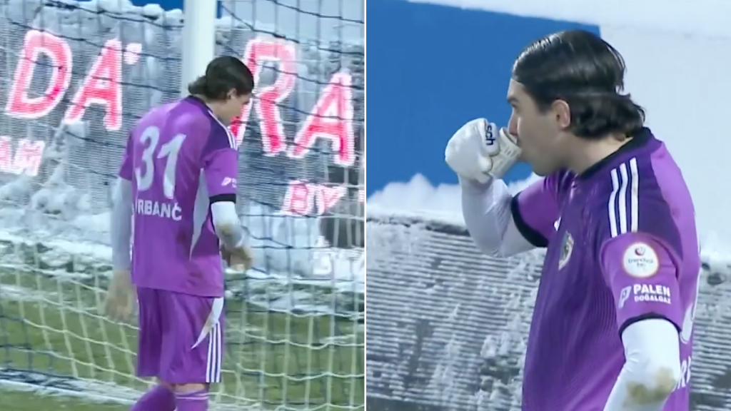 التقطت الكاميرات حارس مرمى نادي إيرزوروم سبور، ماتيا أوربانيك، وهو يحتسي الشاي خلال المباراة لتدفئة نفسه من البرد القارس، حيث أظهرت الصور المتداولة تساقطا كثيفا للثلوج وتجمعها على أرضية الملعب.