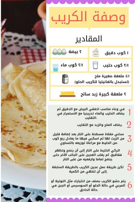 - للكريب الحلو نستبدل الملح بالسكّر مع اضافة فانليا
