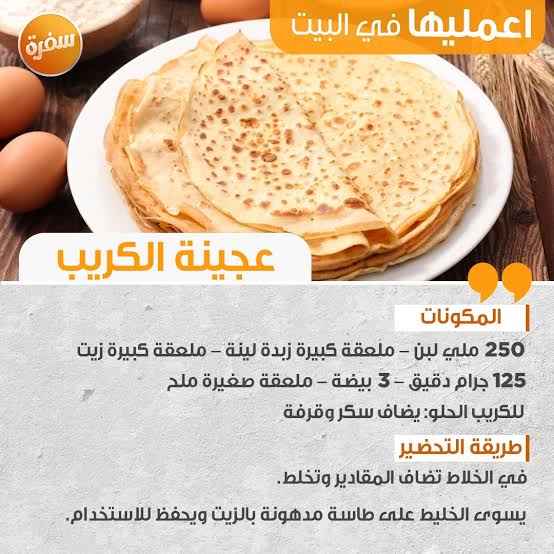 تبحث الكثير من النساء عن طريقة عمل الكريب في البيت خاصة وأنها من الوصفات التي يحبها الكبار و الصغار ويشترونها دوماً من المحلات الجاهزة، لكن يمكنك بمقادير بسيطة عمل عجينة الكريب في البيت و حشوها بالحشوات المفضلة لديك وتوفير ثمن شرائها جاهزة.