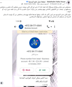 استنكرت الصفحة الرسمية لمنزل الفنان الراحل عبد الحليم حافظ، رسالة استفسار وصلتها من رقم تابع لدولة إسرائيل.