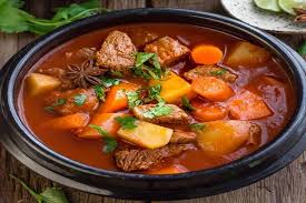 أعيدي اللحم المحمر إلى الطاجن، ثم صبي مرقة اللحم أو الماء الساخن لتغطية المكونات جزئيًا. غطي الطاجن واتركيه على نار هادئة لمدة 35–40 دقيقة، حتى ينضج اللحم والخضار تمامًا ويمتصوا النكهات الغنية.