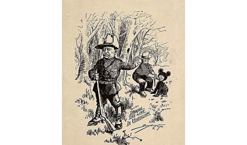 كاريكاتور رسمه كليفورد بيريمان الحائز على جائزة بوليترز للرئيس روزفلت يعفو عن الدب ومنها بدأ التحول