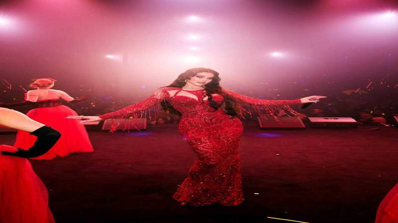 خلال حفلها في بيروت احتفالاً بعيد الحب، تألقت النجمة هيفاء وهبي بفستان أحمر مطرز بالكامل، عكس أجواء رومانسية فاخرة. التصميم جاء مرصعاً بالتطريزات اللامعة التي أضفت بريقاً خاصاً على المسرح، واختارت معه تسريحة شعر مموجة ومكياجاً جذاباً زاد من سحر حضورها أمام جمهورها.
