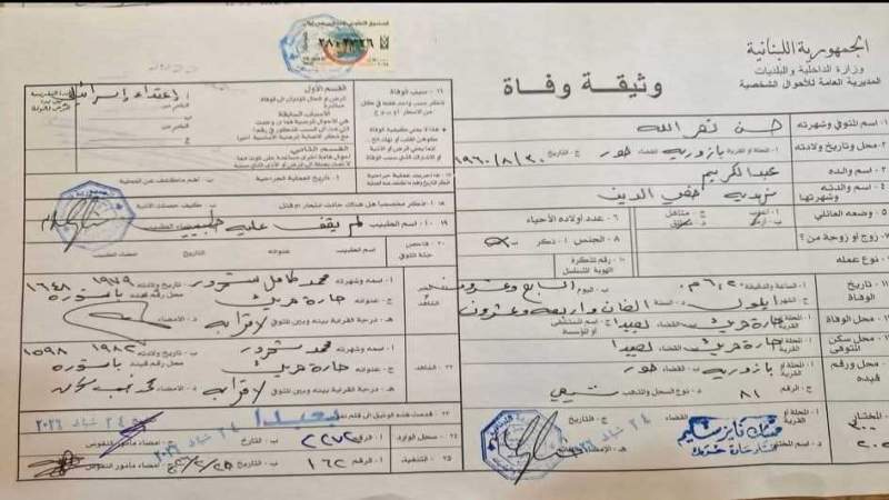 إصدار وثيقة وفاة الأمين العام لحزب الله الشهيد السيد حسن نصر الله