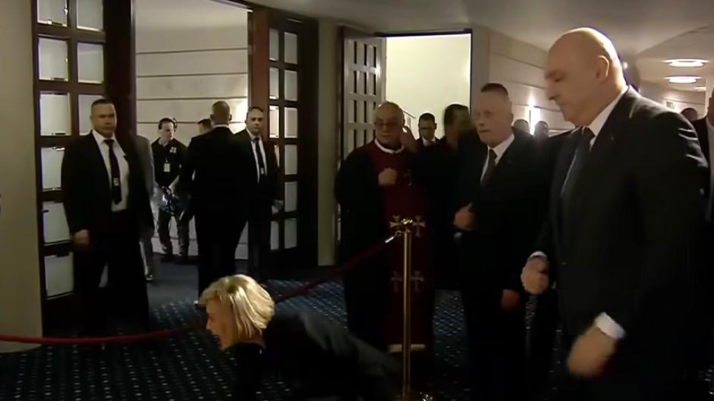 وبعد انتهاء الرتبة، صافح الرئيس عون واللبنانية الأولى عددًا من المشاركين، قبل أن يغادرا إلى قصر بعبدا، حيث كان في وداعهما الأباتي محفوظ ومجلس المدبرين والأب مكرزل.