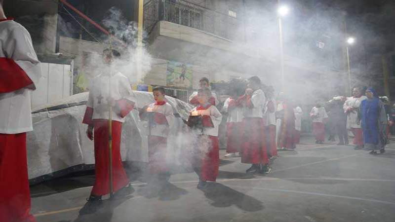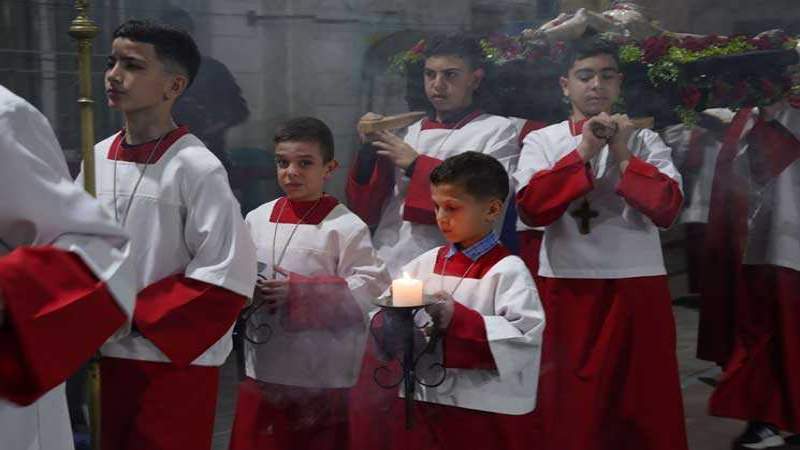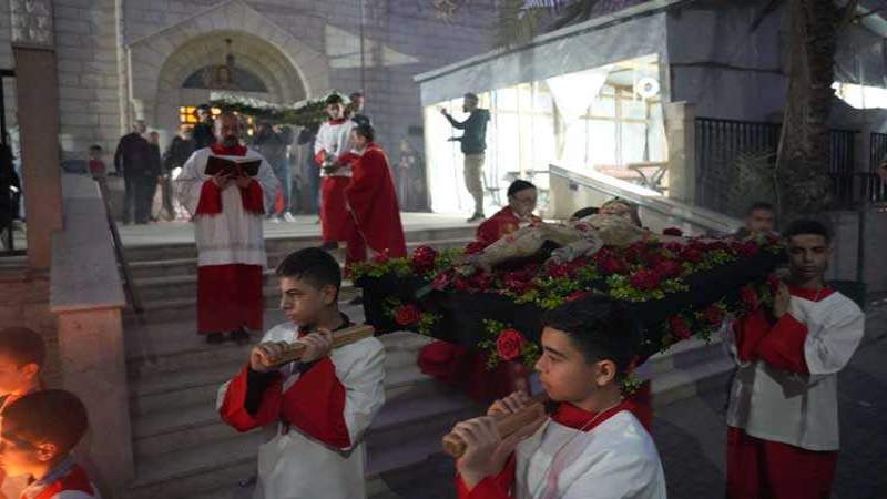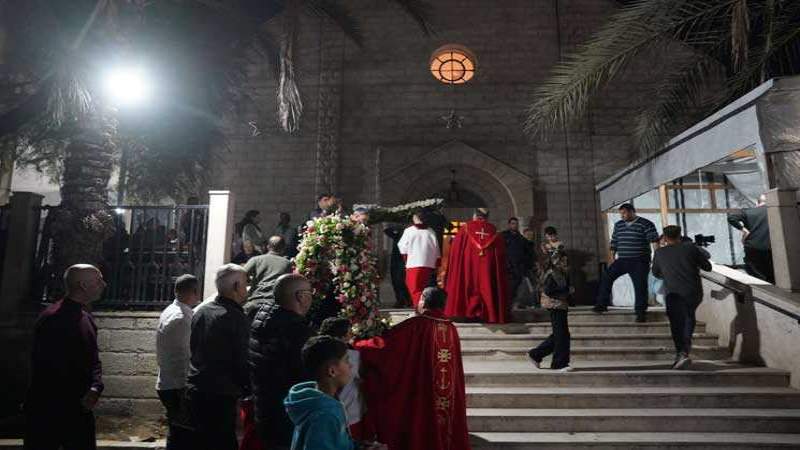 وفي إطار طقوسهم، أقام المسيحيون في غزة، مساء الجمعة، قداسا في كنيسة العائلة المقدسة التابعة للبطريركية اللاتينية في البلدة القديمة بمدينة غزة، بمشاركة عشرات الفلسطينيين، بينهم أطفال ونساء.