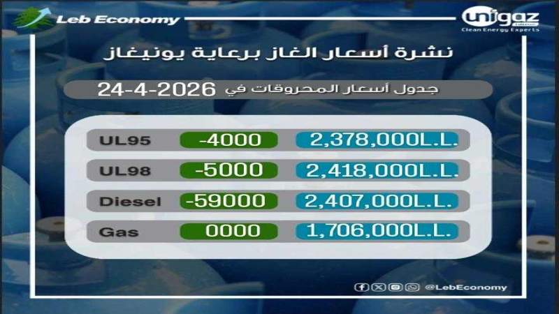 صدر عن وزارة الطاقة والمياه جدول جديد للمحروقات، وجاءت الاسعار على الشكل الآتي: