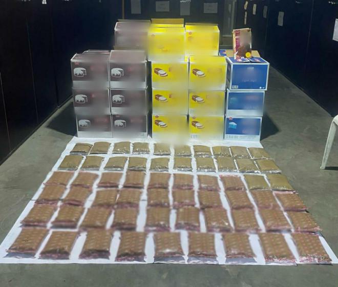 بتاريخ 4-1-2024، توجهت إحدى دوريات شعبة المعلومات الى محلة المصنع، وداهمت المستودع، وبتفتيشه ضبطت في داخله /23,6/ كلغ من مادة حشيشة الكيف مخبأة بطريقة احترافية داخل شحنة من بودرة الحلويات.