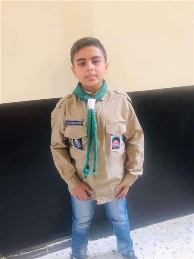 الطّفل في كشافة الرسالة "حسن محسن" (13 عامًا) الذي استشهد في غارة الصّوانة ومعه شقيقه ذو الستة شهور.