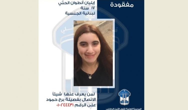 تُعمّم المديريّة العامّة لـ قوى_الأمن الداخلي، بناءً على إشارة القضاء المختص، صورة القاصر المفقودة: إليان أنطوان الحتّي (من مواليد عام 2007، لبنانيّة) التي غادرت، بتاريخ 27-2-2024، منزل ذويها الكائن في محلّة برج حمود، ولم تَعُد لغاية تاريخه.