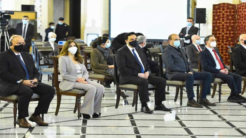 أطلق رئيس حكومة تصريف الأعمال الدكتور حسان دياب في السراي الحكومي حملة التلقيح الوطنية لمكافحة وباء كورونا، خلال لقاء حضره زينة عكر، راوول نعمة، عماد حب الله، ميشال نجار، رمزي المشرقية، حمد حسن، فارتينيه أوهانيان وشربل وهبه، النائب عاصم عراجي، الأمين العام للمجلس الأعلى للدفاع اللواء الركن محمود الأسمر، مستشار رئيس الجمهورية الدكتور وليد خوري، نقيبة الممرضات والممرضين الدكتور ميرنا أبي عبدالله ضومط، رئيسة تجمع الشركات العالية كارول حسون، رئيس الصليب الأحمر الدكتور أنطوان الزغبي، المدير العام لمستشفى رفيق الحريري الجامعي الدكتور فراس الأبيض، والأطباء السادة: جورج دبر، عيد عازار ومازن السيد، ومستشارا رئيس الحكومة خضر طالب وبترا خوري، عن البنك الدولي المدير الإقليمي لدائرة المشرق ساروج كومار جاه، ممثلة البنك الدولي في لبنان منى كوزي، فرح أصفهاني، ندوى رافع، زينة الخليل، غيتا العلم، المدير الإقليمي للاتحاد الدولي لجمعيات الصليب الأحمر والهلال الأحمر في منطقة الشرق الأوسط وشمال إفريقيا حسام الشرقاوي، نائبة المنسق الخاص للأمم المتحدة في لبنان نجاة رشدي، ممثلة منظمة الصحة العالمية في لبنان إيمان الشنقيطي، ممثل منظمة الأمم المتحدة للطفولة يونيسف في لبنان يوكي موكو، ممثل المفوضية العليا للامم المتحدة لشؤون اللاجئين في لبنان إياكي إيتو، المدير العام لوكالة الأونروا في لبنان كلاوديو كوردوني، الممثلة المقيمة لبرنامج الأمم المتحدة الإنمائي في لبنان سيلين مويرود، عضو اللجنة الطبية لمكافحة كورونا الدكتور عبد الرحمن البزري، والسيدة هنا زاغريت، وعن وزارة الصحة: الدكتور إدمون عبود، الدكتور محمد حيدر، فرح بلوق ورئيس دائرة المستشفيات في الوزارة هشام اسماعيل فواز، والسيد رواد جبرايل ممثلاً شركة "فايزر".