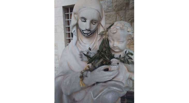 أقدم مجهولون صباح اليوم على تشويه تمثال السيدة العذراء أمام كنيسة سيدة المعونات القديمة في زوق مكايل برسم ذقن على وجه التمثال ودوائر سوداء حول عينَي السيدة العذراء بقلم حبر أسود، وحضرت إلى المكان القوى الأمنية وبوشرت التحقيقات لكشف الفاعلين.